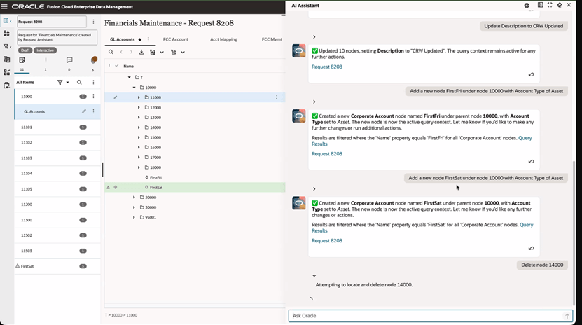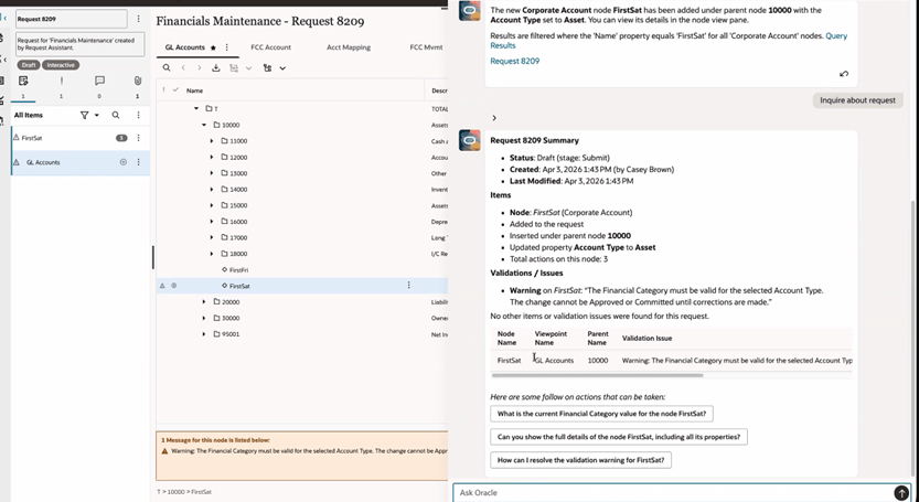 The headline feature of this release is the Change Management AI Assistant, powered by Oracle’s Ask Oracle chatbot. It’s now embedded directly in your Change Management workflow.